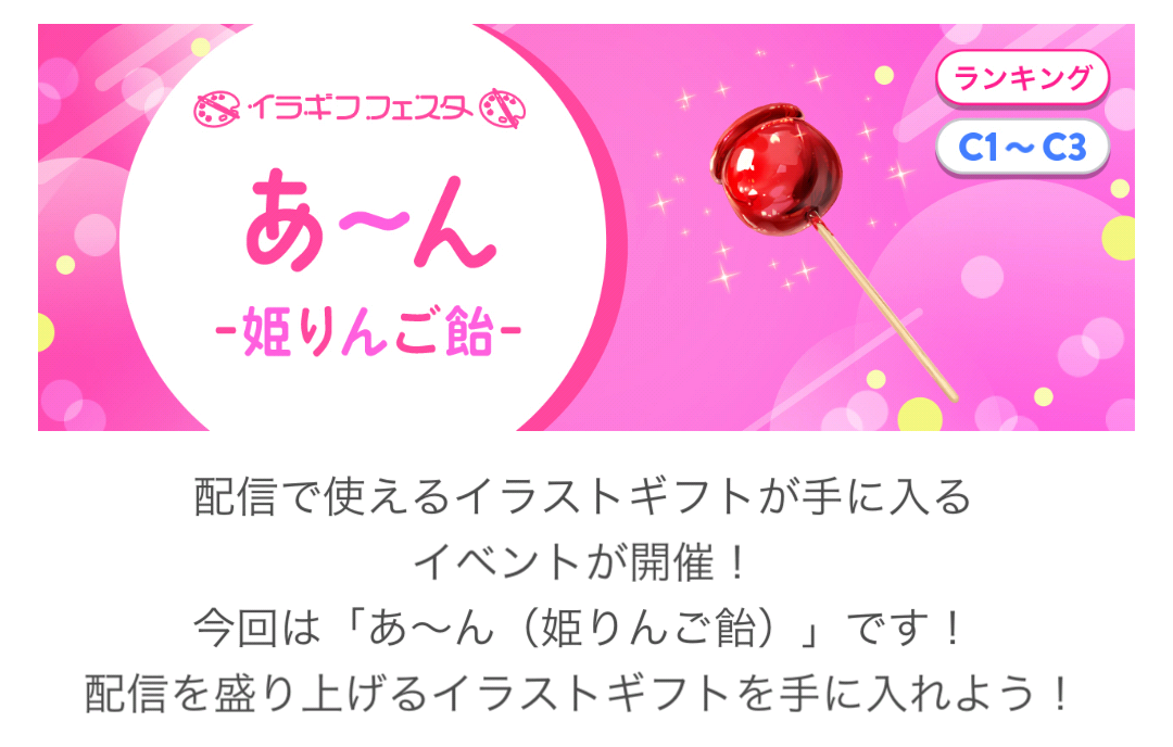 」がライブ配信アプリ「IRIAM」の公式イベント「イラギフフェスタ あ〜ん-姫りんご飴-(C1~C3)」で1位入賞いたしました!