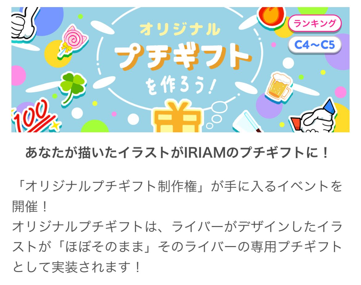」がライブ配信アプリ「IRIAM」の公式イベント「オリジナルプチギフトを作ろう(C4~C5)」で1位入賞いたしました!