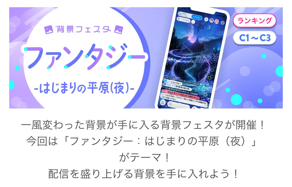」がライブ配信アプリ「IRIAM」の公式イベント「背景フェスタファンタジー-はじまりの平原(夜)-(C1~C3)」で3位入賞いたしました!