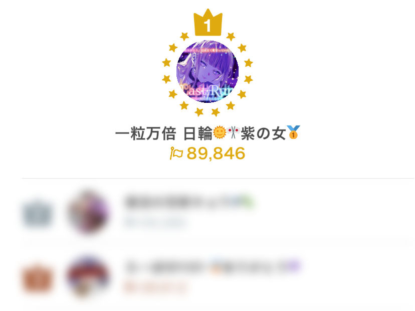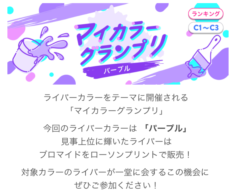 」がライブ配信アプリ「IRIAM」の公式イベント「マイカラーグランプリ パープル(C1~C3)」で1位入賞いたしました!