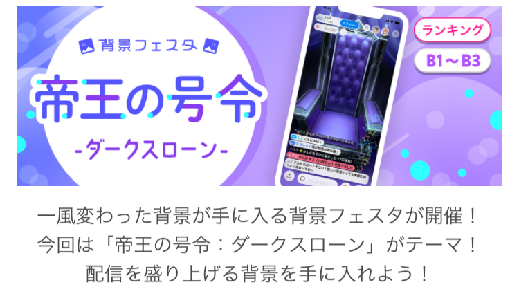 」がライブ配信アプリ「IRIAM」の公式イベント「背景フェスタ-帝王の号令(B1~B3)」で3位入賞いたしました!