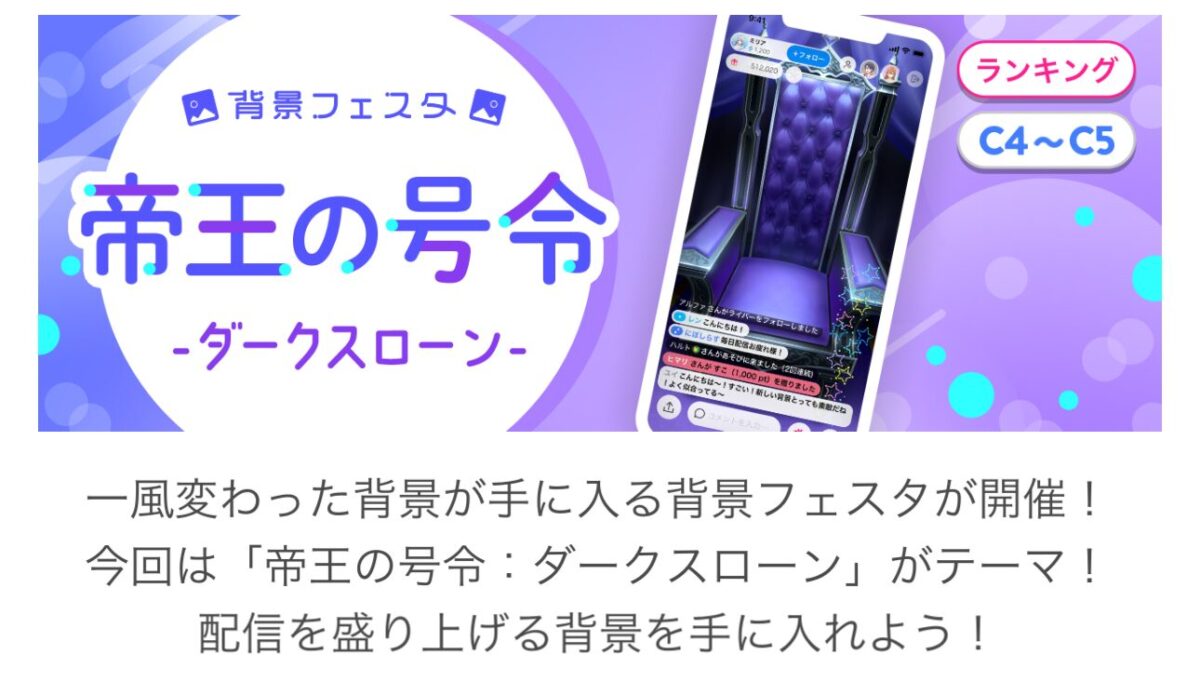 」がライブ配信アプリ「IRIAM」の公式イベント「背景フェスタ-帝王の号令(C4~C5)」で4位入賞いたしました!