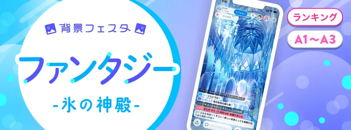 」がライブ配信アプリ「IRIAM」の公式イベント「背景フェスタ-ファンタジー編:氷の神殿-(A1〜A3)」で3位入賞いたしました!