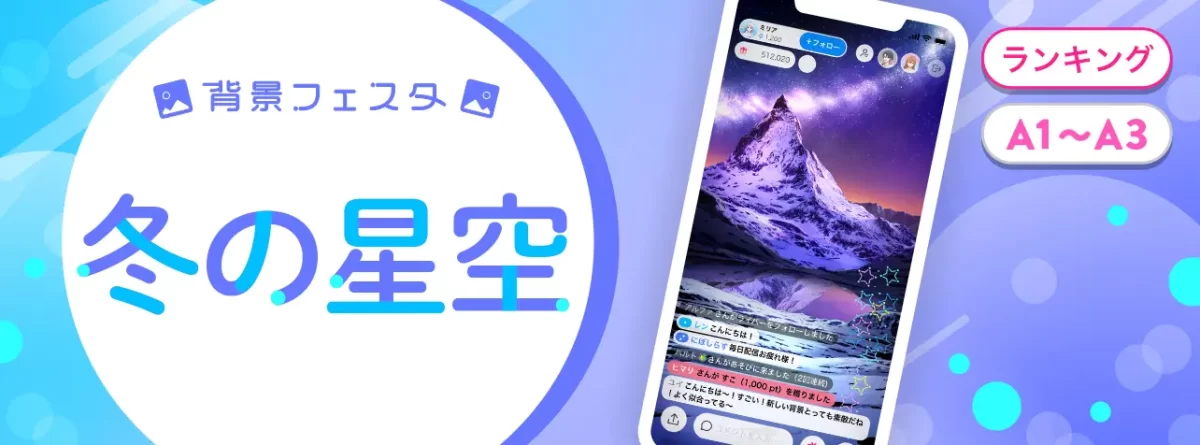 」がライブ配信アプリ「IRIAM」の公式イベント「背景フェスタ-冬の星空-(A1〜A3)」で3位入賞いたしました!