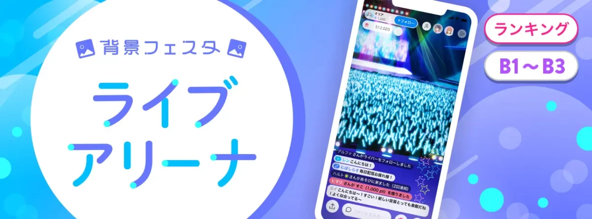」がライブ配信アプリ「IRIAM」の公式イベント「背景フェスタ-ライブアリーナ-(B1〜B3)」で3位入賞いたしました!