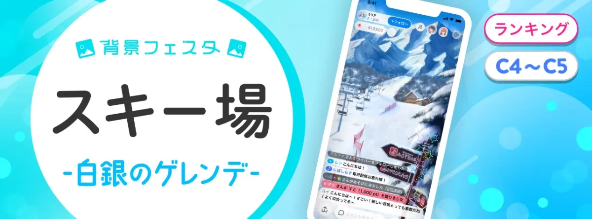 」がライブ配信アプリ「IRIAM」の公式イベント「背景フェスタ-白銀のゲレンデ-(C4〜C5)」で4位入賞いたしました!
