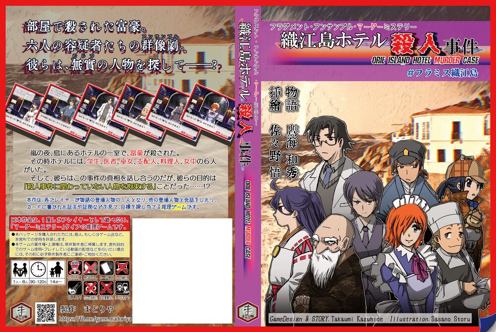 キャラクターの発言がカードになっており、プレイヤーが6人居なくても(1人でも)ゲームが遊べる「フラグメント・アンサンブル・マーダーミステリー」作品。