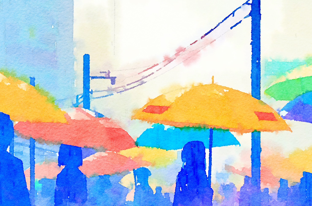 色とりどりの傘が行き交い、景色を飾り立てている。