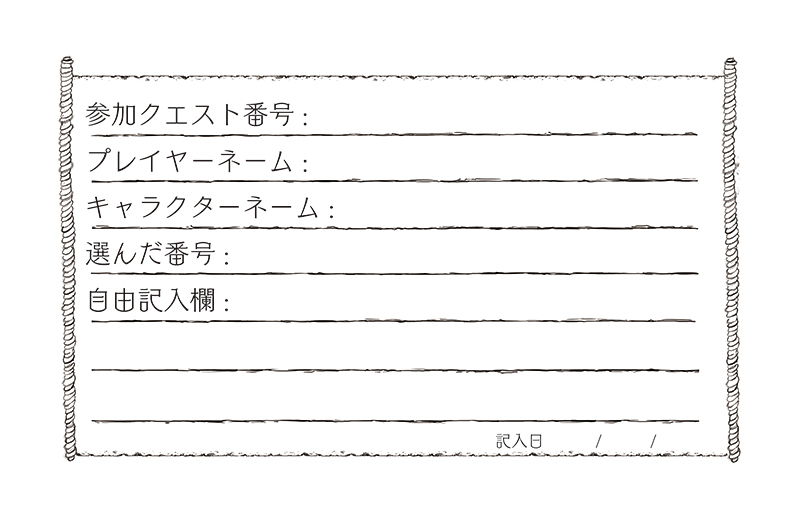 【参加クエスト番号】掲示板に貼ってあるクエストのうち、どれに参加するかを忘れずに番号で記載しましょう。