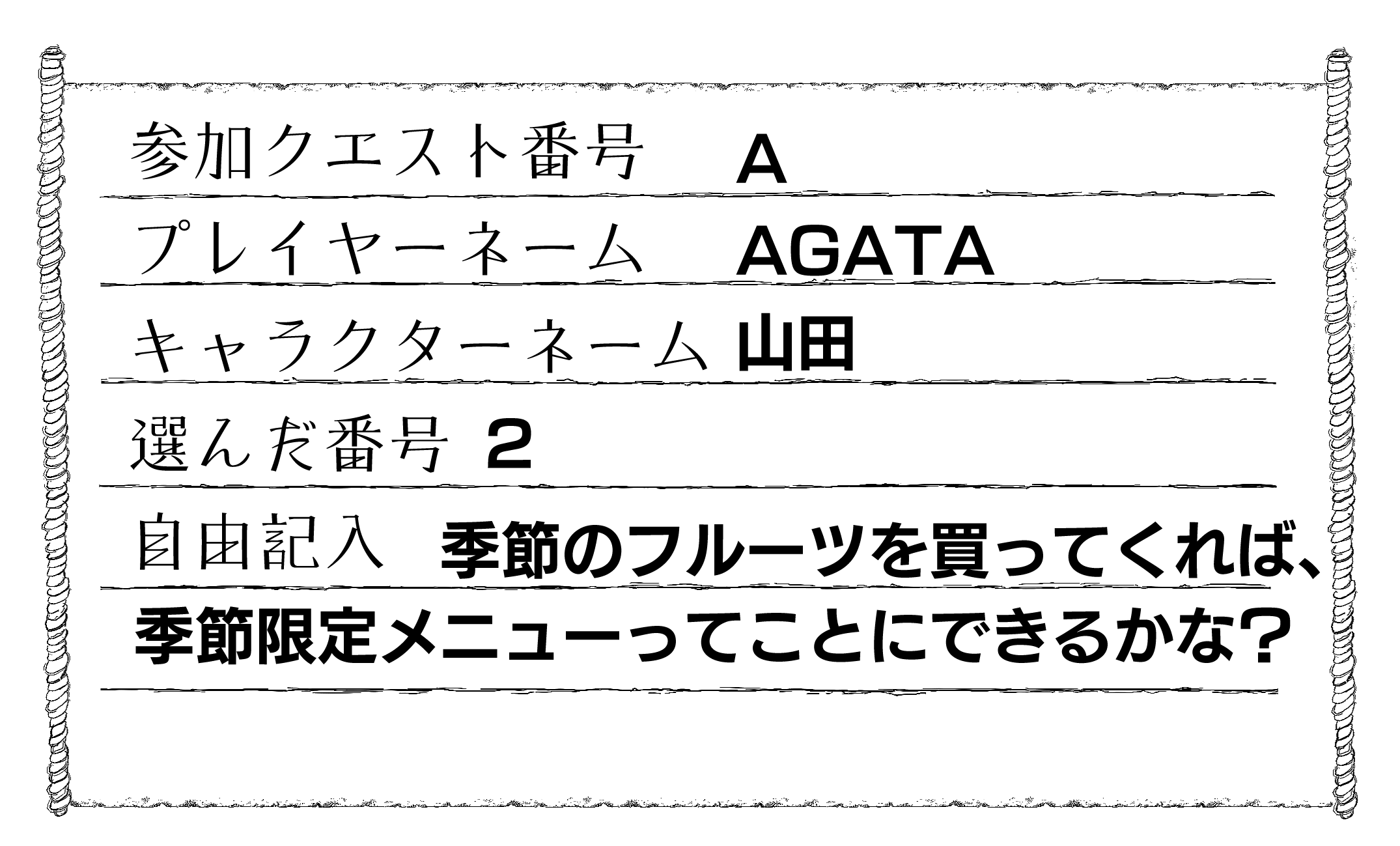 クエスト参加募集期間が終わると、みんなのアクションを元にマスターが新たなストーリーを書いていきます。